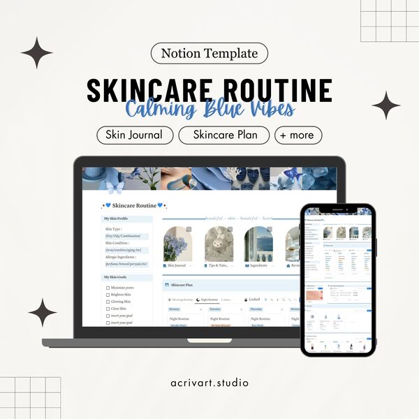 Skincare Routine Plan | Calming Blue Vibes | Notion Template